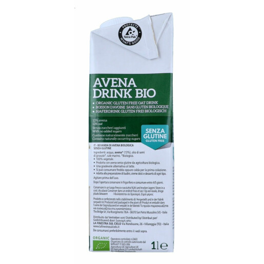 Bautura din ovaz La Finestra Sul Cielo este fara gluten, indicata celor cu intoleranta la gluten, dar nu numai.