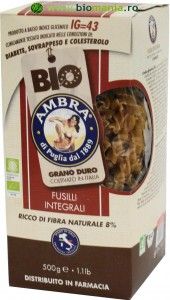 consumul de cereale integrale, bogate in fibre, indicate in dieta zilnica. Pastele integrale din grau dur Bio Ambra contin fibre naturale, 6,4g pentru o portie de paste de 80g. Faina integrala utilizata este produsa in morile proprii si obtinuta prin macinarea completa a bobului de grau, fiind bogata in fibre, saruri minerale si vitamine. Sunt ideale pentru o alimentatie controlata, pentru persoanele supraponderale, pentru cele cu colesterol ridicat sau diabet. Ambra este marca de paste cu cea mai indelungata traditie din regiunea Puglia, de peste 120 de ani. Sigla a fost pictata de faimosul ilustrator Gino Boccasile in anii ’50, imaginea reprezentand o femeie zambitoare si solara care ne invita sa gustam alaturi de ea pastele.