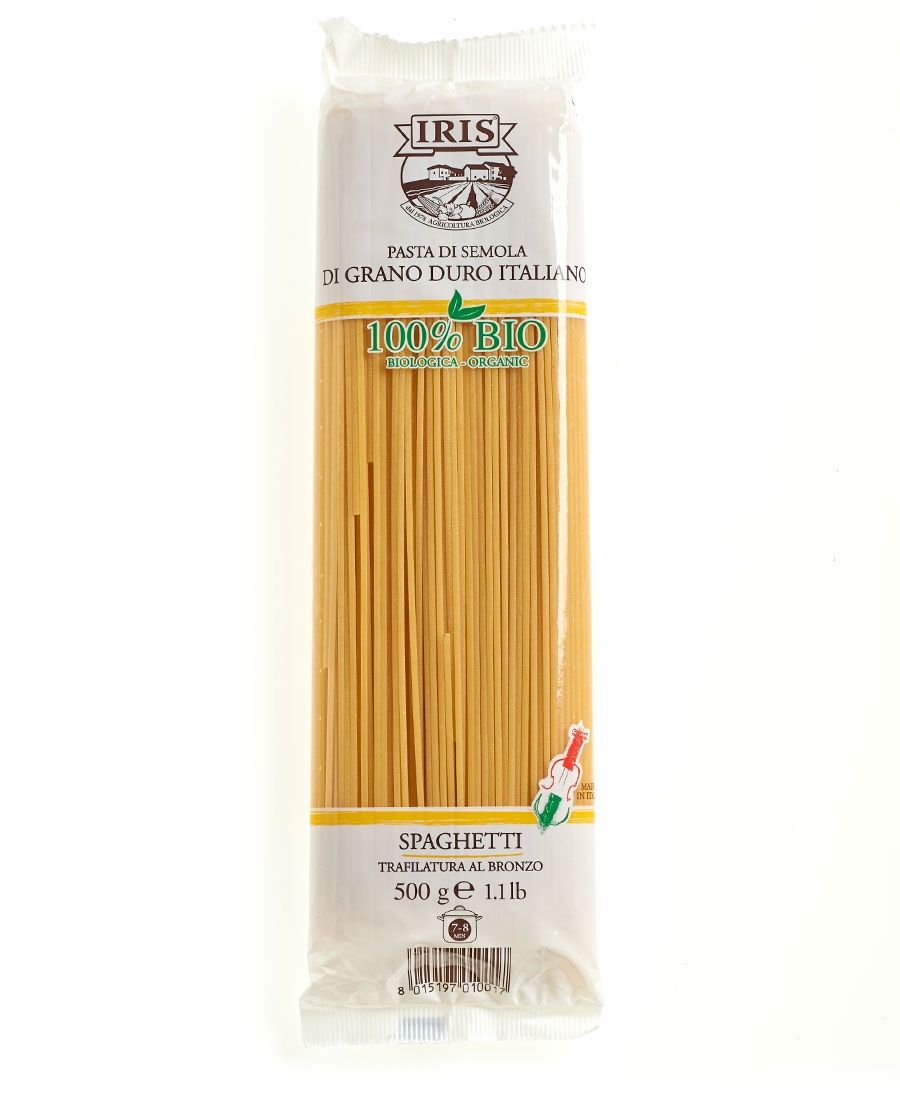 Spaghetele din grau dur Iris Bio sunt produse din faina obtinuta dintr-un amestec de boabe alese cu grijă la fiecare nouă recoltă pentru a garanta un produs cu o valoare nutritivă ridicată și o rezistență optimă la gătit. Grâul dur utilizat pentru producerea spaghetelor din grau este cultivat direct în lanțul de aprovizionare Iris format din fermieri și țărani italieni.