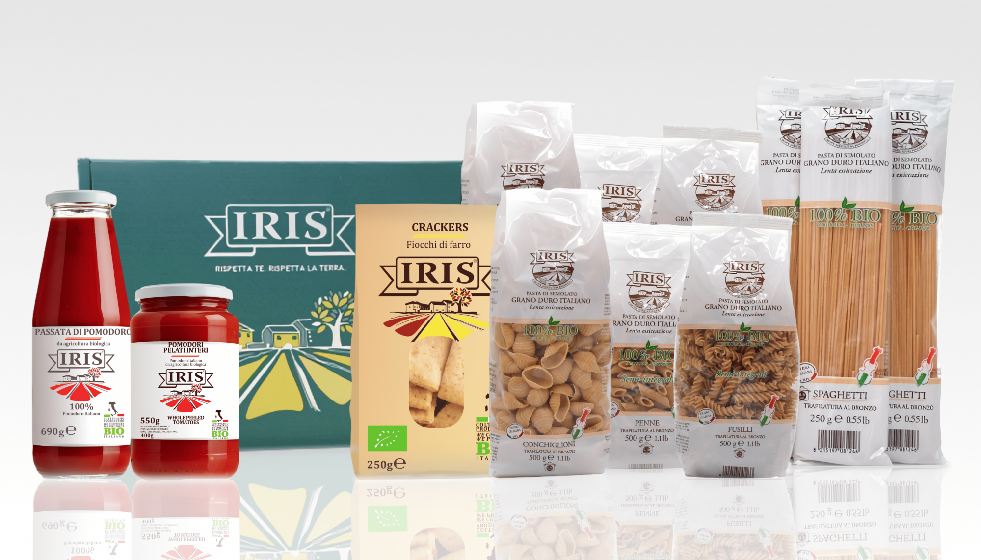 Produsele Iris sunt rezultatul unei lungi călătorii care începe la țară, unde fermierii cultivă pământul cu grijă și atenție față de mediu. Materiile prime astfel obținute sunt apoi transformate în Fabrica de Paste Astra Bio, unde maeștrii producători de paste, cu pasiunea și expertiza lor, creează un produs sănătos, de înaltă calitate și sustenabil.