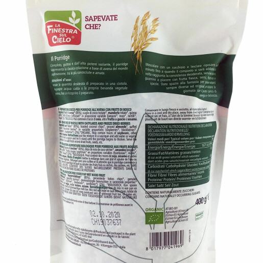 Realizat exclusiv cu ingrediente organice, este o alternativă excelentă la micul dejun tradițional, pentru a începe ziua cu o masă hrănitoare și completă, capabilă să furnizeze toată energia necesară pentru a înfrunta dimineața cu energia potrivită.