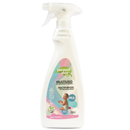 Solutia ecologica multiuz pentru jucării și suprafețe Pierpaoli Ekos Baby asigură curățarea perfectă a suprafețelor, obiectelor și mediilor care pot intra în contact cu bebelușul.